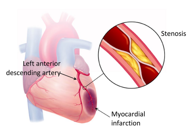 Fig. 1 Myocardial infarction caused from stenosis in left anterior descending (LAD) coronary artery.