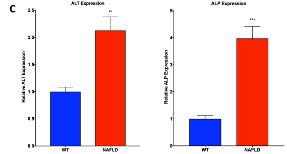 Fig .2.qPCR analysis shows trends in Leprdb/J mice consistent with NAFLD.