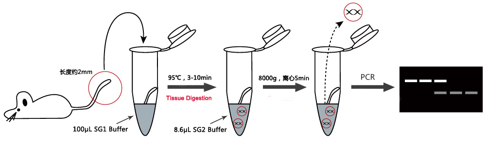 实验室基因工程小鼠品系的保存大多是通过和野生型小鼠交配,然后不断鉴定,筛选携带基因突变或转基因的后代来实现。因此,维持一个基因工程小鼠品系,必须经过大量的基因型鉴定,使用传统的鉴定试剂盒进行鉴定,占据了科研工作者大部分的科研时间。